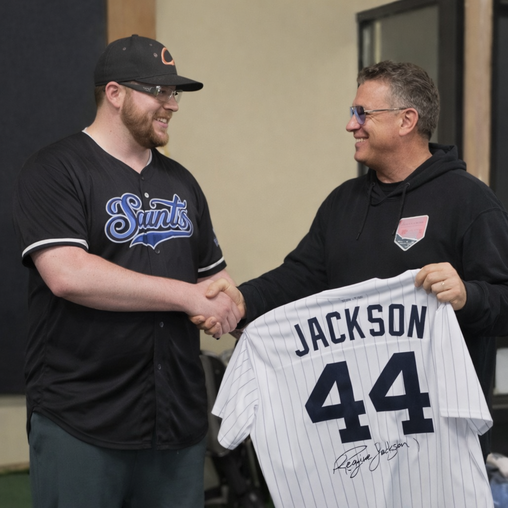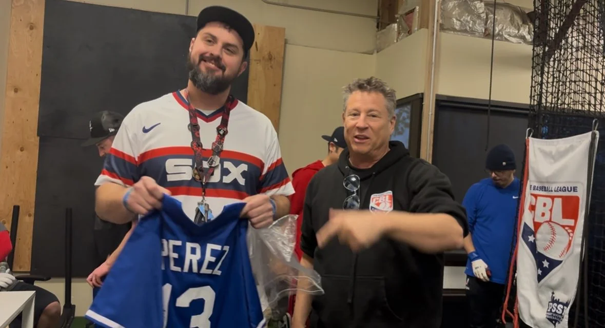 Josh Schiefer wins the Sal Perez Sig jersey lotto after having nearly left the cage before we wrangled him back!
